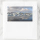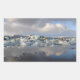 Rechteckiger Aufkleber des Gletschersees Jokulsarlon, auf dem Eisberge, die vom Vatnajokull-Gletscher einstürzen, sich mit den Wolken in Island im Panorama umdrehen.