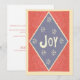 Mit dieser flachen Weihnachtskarte, die auf der Vorderseite ein kühn rautenförmiges Design aufweist, tauchen Sie ein in den Geist der Saison und das Wort Freude in Retro-inspirierter Schrift, umgeben von Schneeflocken. Auf der Rückseite ist Ihre personalisierte Urlaubsbotschaft enthalten: Wir wünschen Ihnen eine freudige und fröhliche Saison! Mögen Ihre Ferien mit Momenten der Liebe, des Lachen und des Glücks ausstrahlen. Frohe Weihnachten und ein frohes neues Jahr! Eine einfache, aber festliche Art, Freunden, Familie und Mitarbeitern herzliche Wünsche zu senden.