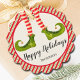 Jolly Christmas Elf Legs Stripes Holiday SCALLOP Geschenkanhänger