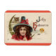 Auf diesem Halloween-Magneten ist ein niedliches, Vintages Bild einer kleinen Hexe mit einer Eule zu sehen. Mit der Nachricht "Jolly Halloween" macht das ein tolles Halloween-Dekor oder ein niedliches, kleines Geschenk!