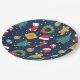 Mit den Tellern von **Jolly Jumble Holiday Paper** bedienen Sie sich für den Feiertagssjubeln! Mit einem lebendigen Design aus Weihnachtskränzen, Ziergegenständen, Lebkuchenmännern, Strümpfen, Süßspeisen und vielem mehr auf dunkelblauem Hintergrund verleihen diese Teller jedem Essen oder Feiern einen festlichen Charme.