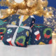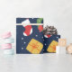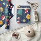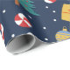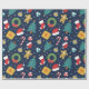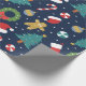 Mit unserem **Jolly Jumble Wrapping Paper** wackeln Sie Ihre Geschenke mit Feiertagssjubeln! Dieses Design, das sich durch festliche Unterhaltung auszeichnet, umfasst Kränze, Geschenke, Ziergegenstände, Lebkuchenmänner, Weihnachtsbäume, Strümpfe, Weihnachtsmannmützen und Bonbons, die auf einem dunkelblauen Hintergrund verstreut sind. Ideal, um dem Gießen Ihres Urlaubs eine spielerische und fröhliche Touch hinzuzufügen.