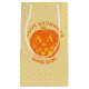 Jolly Kürbislaterne Halloween Pumpkin Trick oder behandeln Personalisierte kleine Geschenktasche. Erstellen Sie Ihre eigenen Goodies-Taschen für eine Geburtstagsfeier zu Halloween-Themen oder die beste Süßigkeiten-Tasche, die ein kleines Kind je got hat, nur um an eine Tür zu klopfen. Alt modische glückliche Jack o' Laterne gemacht in meinen Scheiben von Farbstil. Helle Farbtöne von orangefarbenem Flitz um seine gelben Kerzenleuchten Augen und sein Lächeln gefüllt mit knackigen Zähnen. Dieses bunt geschnitzte Kürbisdesign ist so lustig für Kinder und Erwachsene, sie könnten es einfach spooktacular nennen.