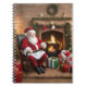 Dieses Weihnachtsheft zeigt eine herzliche Szene des Weihnachtsmanns, der vor einem knisternden Kamin sitzt und Komfort und Freude strahlt.