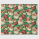 Dieses festliche Verpackungspapier zeichnet sich durch ein sich wiederholendes Muster klassischer Weihnachtsbilder auf einem strukturierten, mittelgrünen Hintergrund aus, der an eine Wand aus Backstein oder Stuck erinnert. Die Hauptelemente des Designs sind: die Gesichter des Weihnachtsmannes: Zahlreiche Darstellungen des Kopfes des Weihnachtsmannes, jedes mit einem rosafarbenen Backgesicht, einem flauschigen weißen Bart und einer traditionellen roten Weihnachtsmannmütze mit weißem Brim und Pom-Pom. Seine Ausdrücke variieren leicht, aber alle vermitteln Wärme und Beifall. Weihnachts-Strumpf: Hellrote Weihnachtsfeiertage mit weißen Manschetten vermischen sich durch das ganze Muster. Manche scheinen voll zu sein, indem sie auf Geschenke in sich hinweisen. Geschenkboxen: Kleine, quadratische Geschenkboxen, die in Goldpapier mit roten Bögen eingewickelt sind, sind ebenfalls Teil des sich wiederholenden Designs. Die Anordnung dieser Elemente ist etwas gestaffelt und überlappend, wodurch ein dichtes und lebendiges Muster entsteht. Die Farben sind traditionell und lebendig und eignen sich somit ideal für einen Aufenthalt in der Geschenkverpackung. Die Ästhetik ist insgesamt fröhlich und nostalgisch, perfekt, um den Weihnachtsgeist zu erfassen.