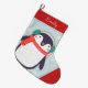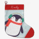 Niedliche Ferienaufkleber mit einer Illustration eines Pinguins mit rotem Schal und grünen Ohrmuffen.