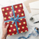 Dieses hübsche Verpackungspapier für Weihnachten zeichnet sich durch einen fröhlich roten Hintergrund mit hellgelben Weihnachtsbeleuchtung in einem horizontalen Muster aus. Perfekte Geschenkverpackung für Familie und Freunde.