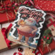 Eine Weihnachtskarte mit dem Weihnachtsmann, der ein Bier hält und Feiertagssjubeln verbreitet.