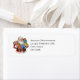 Adressieren Sie Etiketten mit einem niedlichen Weihnachtsbild. Ein traditioneller Weihnachtsmann in seinem klassisch roten Outfit. Seine Arme voller Geschenke. Bereit, Geschenke für alle zu bringen.