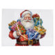 Geschenktasche mit einem niedlichen Weihnachtsbild. Ein traditioneller Weihnachtsmann in seinem klassisch roten Outfit. Seine Arme voller Geschenke. Bereit, Geschenke für alle zu bringen.