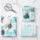 JOLLY Script Turquoise On White 4 Foto Weihnachten Geschenkpapier Set