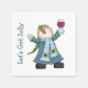 Cocktail-Servietten aus weißem Cartoon mit farblich gekleideten Snowmannbildern, die ein Glas Wein halten. Blauer Text liest sich, lasst uns Jolly holen. Entsprechende Feiertagseinladungen stehen zur Verfügung.