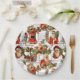 Jolly Vintag Santa, Holly & Music Collage Pappteller