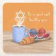 Dieser Untersetzer zeigt eine digitale Handschrift von Daphsam, mit einer dampfenden Tasse Kaffee, die einen David-Stern bildet, umgeben von Granatapfeln, Feigen und einer süßen Geruchshüte. Eine perfekte Touch von Tradition und Wärme für Ihren Jom Kippur Break-the-Fast, der Reflexion, Erneuerung und Zusammengehörigkeit feiert.