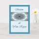Diese digitale Mandala zeigt zehn blaue Vektoren in einem weißen Kreis der geometrischen blauen Formen. Die Grußkarte hat dieses Bild auf einem blauen Hintergrund, einer blauen Grenze und dem Ausdruck: "Shalom bei Jom Kippur. Innerhalb, hat die Karte kleinere Versionen dieses Bildes und des Ausdrucks: "Mai sind Sie eingeschrieben im Buch des Lebens."