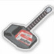 Dieser Aufkleber Bilder Mjolnir (Thor's hammer) mit "Hallo mein Name ist" Aufkleber, um den Hammer zu identifizieren. Zu den Aufklebern zählen Mjolnir, Mew Mew (Darcy's Spitzname für den Hammer) und Jonathan (Paul Rudds Schätzung, wie der Hammer in einem Interview genannt wurde).