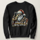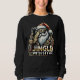 Der coole Weihnachtsmann mit Sonnenbrille und einer gepolsterten Lederjacke mit goldenen Accessoires, mit dem Text "Jingle with Style" gestylt
