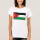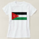 Die Vorderseite dieses T - Shirt zeigt mutig die jordanische Fahne mit ihrem unverwechselbaren weißen Stern im roten Dreieck neben den schwarzen, weißen und grünen Bändern. Hinter dem Bild befindet sich eine attraktive jordanische Landkarte.
