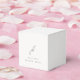 Elegante Hochzeitsbegünstige Box mit klassischem Design mit dem Monogramm in einem Script-Schriftart und Ihren Veranstaltungsdetails in einem klassischen Serif-Schriftart.