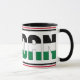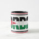 Jordan Flag Inschriftenkunde Black Red White Green Tasse mit der Aufschrift "Jordan", die mit dem Muster der jordanischen Nationalflagge in den Farben Fire Motor Red, Darmouth Green, Black und White verwechselt ist. Das Design ist mit zwei zweifach dünnen Linien im Motor Rot und Schwarz auf der Oberseite und auf der Unterseite abgeschlossen. Schwarze Farbe im Inneren des Bechers und der Becher-Griff ergänzen das Design sehr gut. Die Jordan Combo Tasse ist das perfekte Geschenk für die Jordanier, die stolz auf ihr Erbe sind.