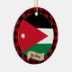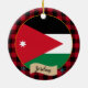 Ornamente: Rustikales jordanisches Dekor mit jordanischen Fahnen, umgeben von roten und schwarzen Büffel karierte Muster - Liebe mein Land, Weihnachtsdekoration, nationale Patrioten / Sportfans