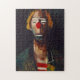 Im Puzzle findet sich der luxemburgische Künstler Joseph Kutter 'Tête de Clown' oder 'Clownleiter' (1937). Ein düsteres Porträt eines roten Nonnenmänners mit Clownschminke, orangefarbenem Haar und farbenfroher Ausstattung.