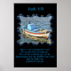 Josh 1:9 mit einem alten Boot im ruhigen Ozean. Poster