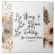 Die Keramik mit inspirierender Zitatskriptur zeigt eine Aquarellblüte mit rosa und grauen Blume und Blattwerk. Es zeigt einen Teil eines mächtigen Bibelverses, aufgenommen von Joshua 1 9, "Sei stark, sei tapfer, sei furchtlos. Du bist nie allein."