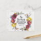 Die Postkarte der Inspirationsschrift zeigt einen hellen, blumengeschmückten Kranz in einem eleganten botanischen Stil mit bordeauxfarbenen und gelben Blumen und Grünpflanzen. Die Rückseite zeigt Bibel Verse Joshua 1:9, "Habe ich dir nicht geboten? Sei stark und mutig! Keine Angst haben; lassen Sie sich nicht entmutigen, denn der Herr, dein Gott, wird bei Ihnen sein, wohin auch immer Sie gehen."-