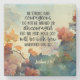 Der inspirierende Zitat-Untersetzer aus Stein zeigt ein herbstliches Aquarelldesign mit verbrannten orangen Blätter und einem blauen Himmelshintergrund. Es enthält Bibel Verse Joshua 1:9, "Sei stark und mutig, habe keine Angst oder entmutigt, denn der Herr, dein Gott wird bei dir sein, wohin du auch gehst."