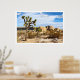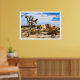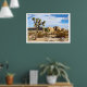 Foto von Joshua Bäumen, Felsen und Sand gegen einen blauen Himmel im Joshua Tree Nationalpark. Anpassbarer/entfernbarer Text, "Joshua Tree" in der rechten unteren Ecke.