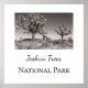 Das Bild zeigt ein Schwarz-Weiß-Foto einer Wüstenlandschaft mit zwei prominenten Joshua-Bäumen. Die Bäume stehen hoch gegen einen gedämpften Himmel, ihre Äste reichen in verschiedene Richtungen aus. Der Vordergrund ist voll von tief liegender Wüstenvegetation, die ein Gefühl von Tiefe und Textur schafft.