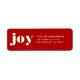 Fügen Sie Ihren Urlaubsumschlägen einen festlichen Akzent mit diesen individuell anpassbaren Weihnachtsadressen-Etiketten hinzu. Sie enthalten das Wort "JOY" in fett roter Typografie. Personalisieren Sie diese, indem Sie Ihre Daten hinzufügen. Diese individuellen Urlaubsadressen-Etiketten sind perfekt für Ihre Weihnachtskarten und Einladungen. Matching-Elemente sind verfügbar.