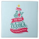 Keramik mit einer lustigen und skurrilen Illustration. Typografie in Form eines Weihnachtsbaumes mit einigen Weihnachtsschmuckstücken und einem Stern darüber. Im Inneren sind die Worte: Freude an der Welt.
