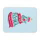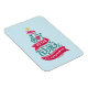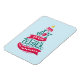 Magnet mit einer lustigen und skurrilen Illustration. Typografie in Form eines Weihnachtsbaumes mit einigen Weihnachtsschmuckstücken und einem Stern darüber. Im Inneren sind die Worte: Freude an der Welt.
