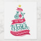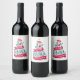 Weinflaschen mit einer lustigen und skurrilen Illustration. Typografie in Form eines Weihnachtsbaumes mit einigen Weihnachtsschmuckstücken und einem Stern darüber. Im Inneren sind die Worte: Freude an der Welt.