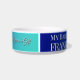 This dog bowl design celebrates the bond between pet and parent with a modern, faith‑inspired layout. Your pet’s name and nickname appear on the left side in elegant Playfair Display font, balanced by their photo at the center. Five silver pawprints rise gracefully beside the photo, symbolizing companionship and love. On the right side, the phrase “Every day with you is a gift” shines in flowing Great Vibes script with a subtle black drop shadow. Set against a blue‑teal gradient background, this chic tribute blends spiritual meaning with minimalist style, creating a heartfelt keepsake for everyday use.