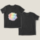 This vibrant T-shirt design, featuring the text "Journey to Joy.", is an explosion of color and positivity. The phrase is rendered in a playful, flowing rainbow script, with each letter transitioning smoothly through bright hues from warm reds/oranges to cool blues/purples. Scattered around the text are small, whimsical multi-color elements like hearts, stars, and swirls, all set against a soft, light-colored background. It’s a cheerful, uplifting, and abstract design that captures a feeling of happiness and optimistic movement.