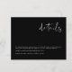 Diese Hochzeitsdetails-Gehäuse-Karte verfügt über einen edlen handgeschriebenen Schriftart und modernes minimalistisches Design. Es ist die perfekte Ergänzung zu Ihrer sauberen und modernen Hochzeitssuite. Sie können diese auch nutzen, um Unterkünfte oder Details zu jeder Veranstaltung anzuzeigen; Babydusche, Brautparty, Ruhestand Party, etc. Bearbeiten Sie *most*, um Ihren Anforderungen gerecht zu werden.