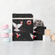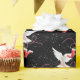 Weiße Taube fliegt mit roter JOY-Nachricht auf einem gestreiften String. Die schwarze Hintergrundfarbe kann geändert werden.