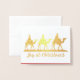 Drei weise Männer Weihnachtskarten mit Gold, oder Silber, Folie. Falte Karten haben eine Folie auf der Vorderseite. Die Weisen reiten Kamele auf einem weißen Hintergrund auf der Vorderseite der horizontalen Karten. Text ist "Joy at Christmas", auch in Folienschrift. Im Inneren sind die Farben rot mit weißem Text für die Nachricht und Signatur. Oben sind wirbelnde, funkelnde Sterne der Hintergrund für ein weißes Panel mit rotem Text. Die Christliche Schrift lautet: "Als sie den Stern sahen, waren sie voller Freude!", aus dem Buch Matthew. Mehr Folienstars auf der Rückseite der Karte. Kaufen Sie in drei Größen, mit Umschlägen, die in drei Auswahlen kommen.
