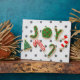 Schicken Sie Ihre Feriengrußwünsche stilvoll mit diesen fröhlichen Weihnachtskeksen auf einem Polka dots weißen Hintergrund.