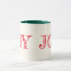 Diese Tasse hat ein rotes Wort von "JOY" über weißem Hintergrund. Dargestellt mit dunkelgrünem Interieur und Griff, mit dem Sie Ihre Farbe auswählen können. Passen Sie diese Tasse an oder kaufen Sie sie wie gezeigt.