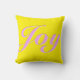 Ein schönes, individualisierbares Kissen mit dem Wort "Joy". Ideal für den Urlaub dekorieren, oder einfach nur einen Pop von Farbe und Freude zu Ihrer Wohngestaltung. Klicken Sie auf "Anpassen", um die Farben Ihrer Wahl zum Text und Hintergrund hinzuzufügen. Die Rückseite dieses eleganten Akzent Kissen ist ebenfalls anpassbar. Erhältlich in Ihrer Wahl von Größe und Stoff Optionen. Joy.