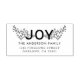 Einfache und festliche Rücksendeadresse-Selbstfarben-Briefmarke mit "JOY" in großen, fetten Buchstaben, umgeben von zarten Blattelementen.