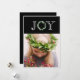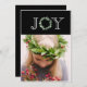 Elegante "Joy" Typografie mit Imitate eucalyptus Kranz für den Buchstaben "O". Fügen Sie Ihr persönliches Foto hinzu, um diese Urlaubskarte auszufüllen. Fügen Sie auf der Rückseite Ihre eigene Urlaubsstimmung und Namen hinzu. Das Muster vorne wird auf die Rückseite dieser Karte übertragen.