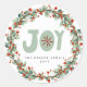 Joy | Green Red Wreath Foliage Berries Weihnachten Runder Aufkleber