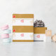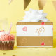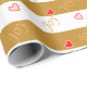 Fesselnde Herzmuster auf goldgelb und weiß gestreiftem Geschenkpapier.