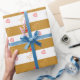Joy Heart Pattern on Striped Golden & White Geschenkpapier