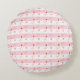 Wunderschönes Herz rundes Kissen. Rosa und rote Herzen auf weißem und rosa gestreiften Hintergrund. Möge Liebe und Freude immer in jeder Zuhause präsent sein!
